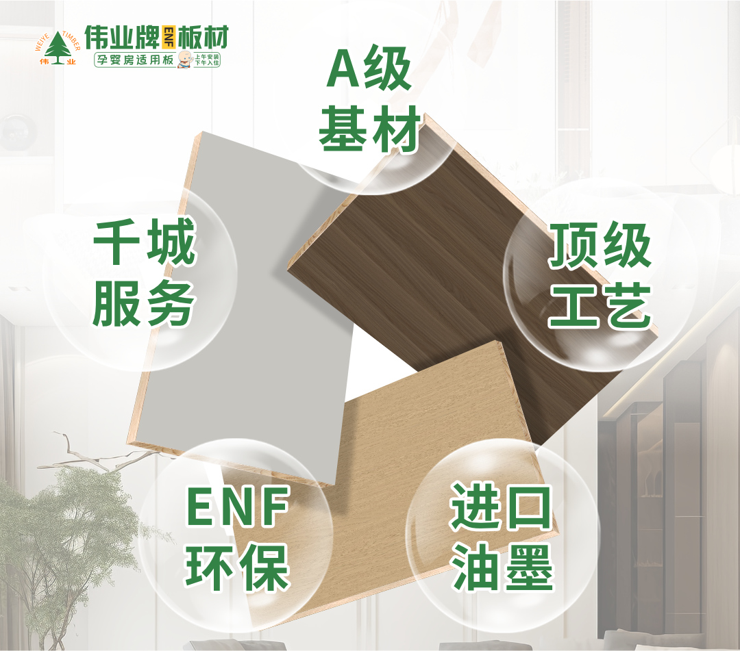 選板材,不止看環保!偉業牌板材用A級基材頂級工藝進口油墨ENF+環保千城服務,重新定義“一塊好板”的滿分標準! A級原木基材,從源頭打造“基因霸權” 好板材,...