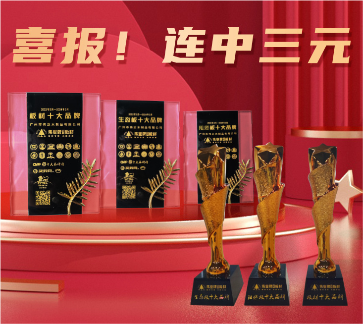 偉業牌板材又傳喜訊再次刷新榮譽榜,榮獲:2023年度生態板行業十大品牌2023年度阻燃板行業十大品牌 近日,品牌網“2023年度十大品牌”榜單揭曉,偉業牌板材憑...