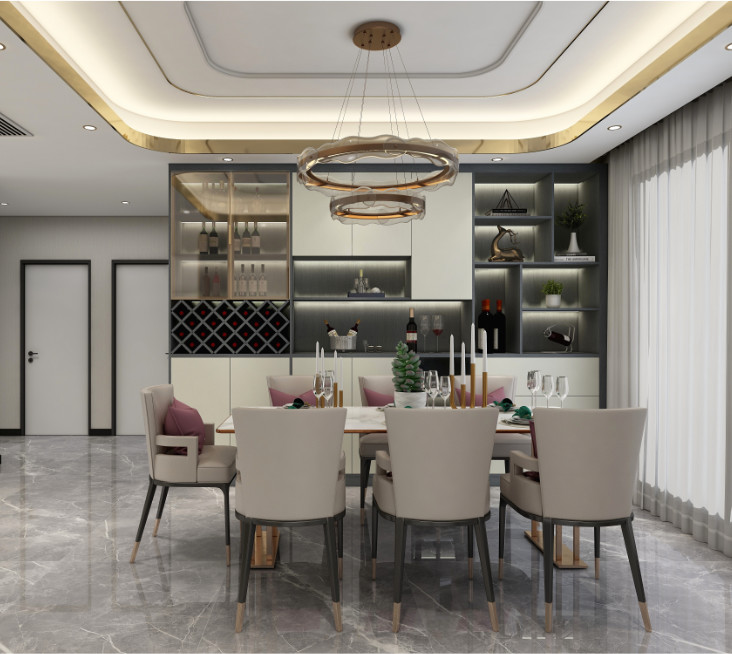 地點:山西太原功能:偉業全案高定 餐廳區域一字型櫥柜,縱向劃分“洗-切-炒”操作動線,引入潮流的“餐桌+島臺”設計,聯合條狀吊燈,合力打造輕奢的浪漫氛圍,高效的...